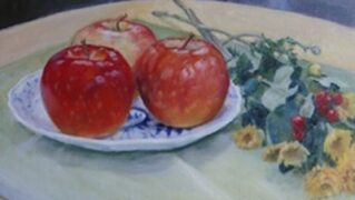 テーブルクロスに画集が映えて、彩がきれいですね。(なんとなくあべのの匂いも感じます)