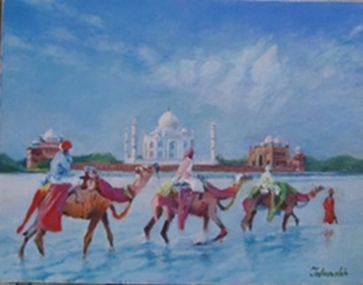 正月明けでガラガラの関空から5泊7日の予定で、インドに、行った、つもりで描きました。